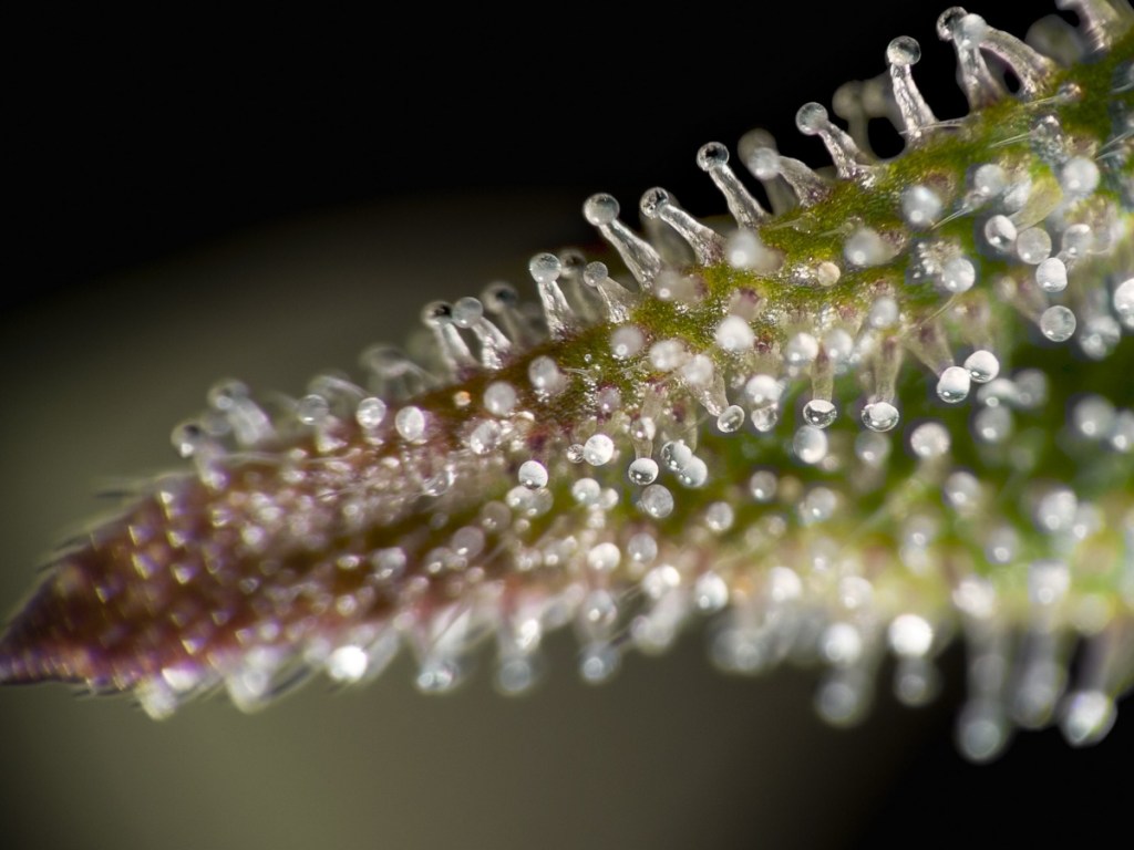 Each flower is covered with translucent resin glands, concentrated on the buds. The goal of the grower is grow the largest colas or flower buds–not much different from growing the largest tomato. As cannabis buds develop, they become sticky with resin, which contains the trichomes that hold the medicinal elements. You should look closely at the flower buds daily–a small magnifying glass will help. You will know the flower is ready by visual clues: size, smell, trichomes, density of bud—and especially colour. The resin coating the pistils will become milky or amber in colour, rather than clear. When the resin is amber, the bud is mature and all the trichomes, flavonoids and cannabinoids are at maximum development. If harvest is delayed they will begin to lose quality, so don’t wait too long.