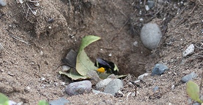 They arose 144 million years ago at the beginning of the Cretaceous period when they diverged from their Apoidea wasp relatives. That was also the period when flowering plants first appeared. Predacious beneficial insects use nectars as sources of energy to fuel flight. Bees not only use nectar for energy, but they use it as an ingredient in the food they collect for their offspring (along with pollen). So it could be said, that it was at this time that bees became vegetarian. They evolved particularly efficient nectar sucking equipment and their mouthpart structure diverged rapidly. Characteristics associated with different mouthparts (also called tongues) are often used by melittologists (an entomologist specializing in the study of bees) in attempting to classify bees into major evolutionary lineages. There is a tremendous diversity in appearance, nesting behaviour and feeding habits of native bees. Some collect pollen from a wide variety of flowers. Others are more restricted in their dietary breath. They range in size from 2mm to 39mm and many are extremely hairy while some are quite bald. They come in a variety of colours, even green. Most are solitary (about 90%), however sixteen species of bumble bees in Ontario live together in hives. Some live in abandoned burrows, others in pithy stems and others in wooden snags. As insects, bees have an external skeleton. They have three pairs of legs, and a body in three parts: the head, the thorax and the abdomen. Bees are under threat from all sides; they have natural enemies such as parasitoids, food thieves and other bees. They are at risk from environmental factors such as weather and climate change. They must contend with disease and introduced species. Those who live in the ground are at risk of drowning. They risk losing feeding, nesting and overwintering habitat and they are at risk from chemical pesticides.