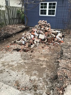 After decades of staring at my broken and ugly concrete driveway and imagining fragrance and blossoms in its space, I finally decided to break it up, take it away and create a new garden area. For the most part I want the garden to be given over to flowering perennials for pollinators. It’s the sunniest part of my garden–perhaps the only part that faces south and has full sun. It’s valuable real estate, in garden terms–far too precious to give over to a driveway! This driveway was made sometime in the 1940’s, and it was made up a layer of bricks over a 5-inch thick layer of poured concrete. It’s been eighty years since the earth under that concrete has been exposed to oxygen, light, or precipitation. I can’t tell you much about that soil, but there’s one thing I know for sure: it’s dead.