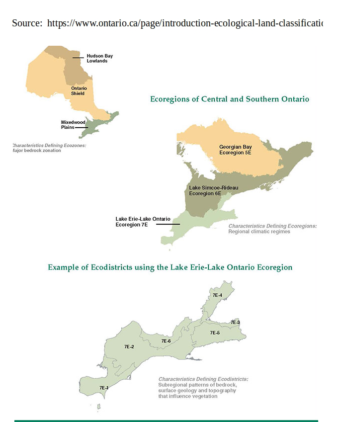 We need the concept of ecosystem to really understand whether a species belongs to a place. An ecosystem is a community of plants, animals and abiotic (non-living) features that comprise a distinct place. Ecologists have categorized places with similar ecologies into broad groups (ecozones) which are then subdivided into smaller groups (ecoregions and ecodistricts). Ontario’s Ministry of Natural Resources and Forestry has defined three ecozones: Hudson’s Bay Lowlands, Ontario Shield, and Mixedwood Plains. Within the Mixedwood Plains, which comprises most of Southern and Eastern Ontario, there are two ecoregions: 6E (Lake Simcoe-Rideau) and 7E (Lake Erie-Lake Ontario). Each region is made up of smaller ecodistricts. Grimsby ecodistrict (7E-3), for example, at 74,000 hectares is a narrow strip of land below the escarpment from roughly Campbellville to the Niagara River. Visit https://files.ontario.ca/mnrf-ecosystemspart1-accessible-july2018-en-2020-01-16.pdf for a fascinating look at all of Ontario’s zones and regions.
